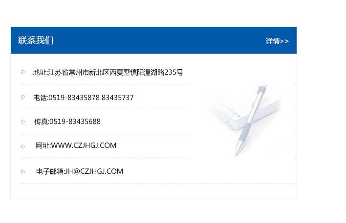 傳真:0519-83435688    郵編:213135    網址:WWW.czjhgj_com.zhongnanvalves.com    電子郵箱:JH@czjhgj_com.zhongnanvalves.com